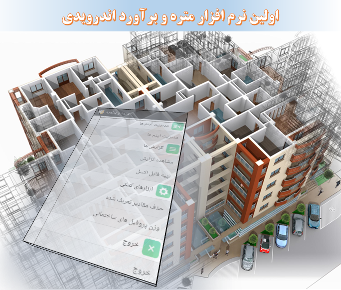 اولین نرم افزار متره و برآورد پروژه در محیط اندروید با قابلیت های متنوع تقدیم حضورتان می شود.